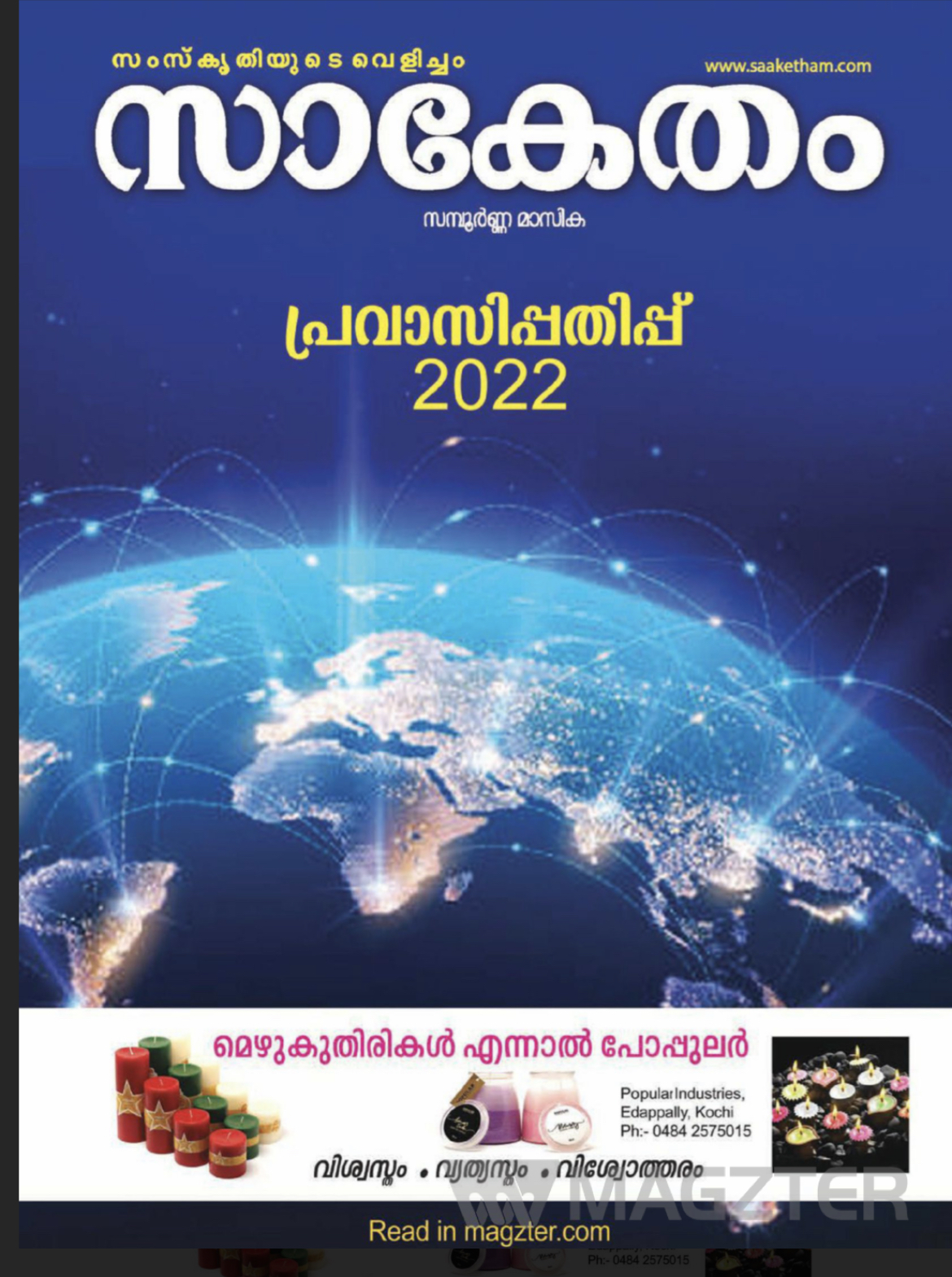 #saaketham സാകേതം മാസിക പ്രിന്റ് എഡിഷൻ കടകളിലും ഡിജിറ്റൽ എഡിഷൻ മാഗ്സ്റ്റർ ആപ്പിലും ലഭ്യമാണ്. പ്രിന്റ് എഡിഷൻ വില 20 രൂപ. ഡിജിറ്റൽ എഡിഷൻ 2$. പ്രവാസിപതിപ്പ് ആണ് ഇത്തവണ.